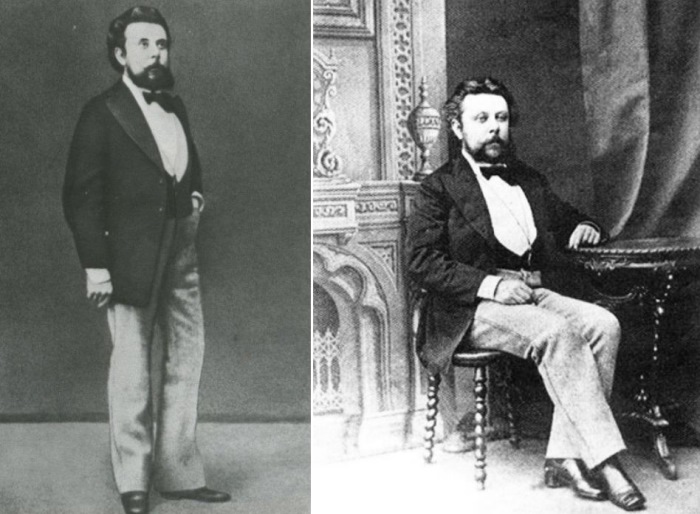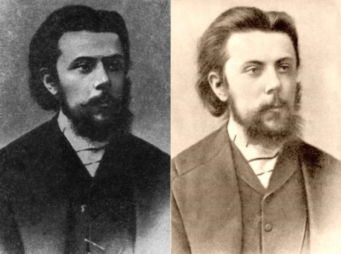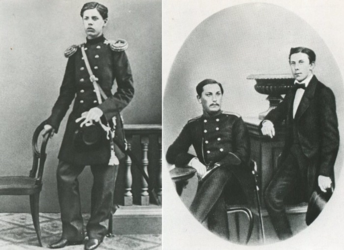 Слева – Модест Мусоргский, офицер лейб-гвардии Преображенского полка, 1856. Справа – Модест Петрович Мусоргский (справа) с братом, 1858 | Фото: fanread.ru и static.newworldencyclopedia.org