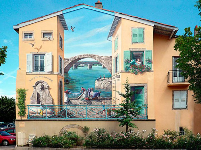 Можно сказать, что Патрик Коммеси (Patrick Commecy) занимается стрит-артом, вот только его уличное искусство не похоже на то, что принято понимать под этим понятием. Художник расписывает стены, создавая настоящие иллюзии. Его сюжеты идеально вписываются в окружающий стиль, и росписи выглядят словно яркое продолжение архитектурного ансамбля.