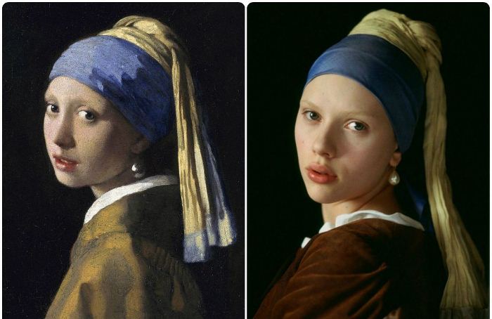 Девушка с жемчужной сережкой: знаменитая картина Яна Вермеера и кадр из одноименной экранизации