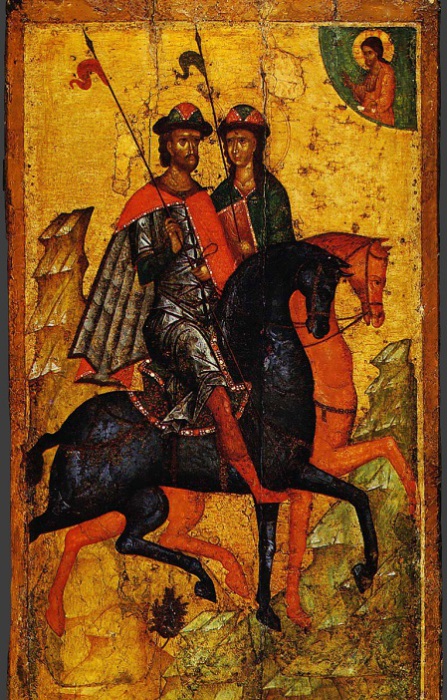 Святые Борис и Глеб на конях, середина XIV века. | Фото: uspensk.ru.