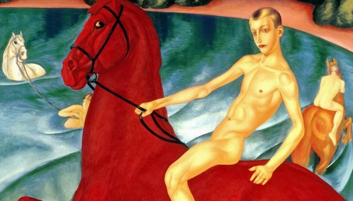 Картина Кузьмы Сергеевича Петрова-Водкина «Купание красного коня», написанная в 1912 году, вызвала у современников множество споров. Одни негодовали, что коней такого цвета не бывает, другие пытались объяснить ее символическое содержание, а третьи усматривали в ней предвестие грядущих перемен в стране. Когда началась Первая мировая война, художник воскликнул: «Так вот почему я написал «Купание красного коня!» Так что же скрывает в себе картина, которая изначально задумывалась как бытовая?