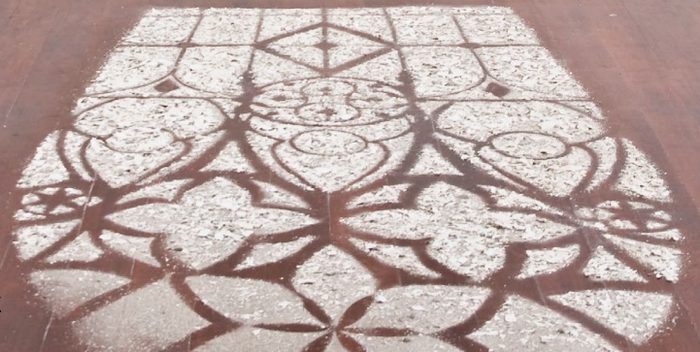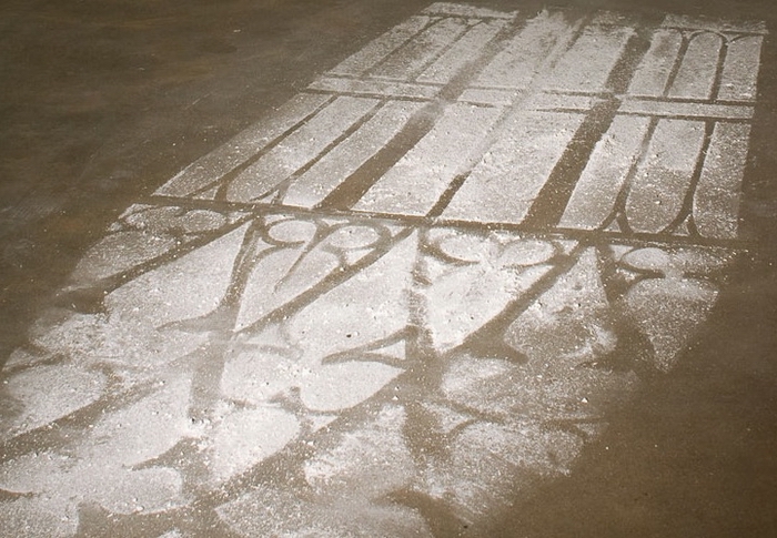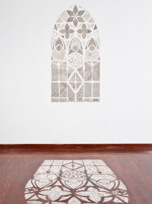 Художник из Эквадора Оскар Сантиллан (Oscar Santillan) предлагает новый взгляд на завораживающую игру света, проходящего сквозь оконное стекло, в своей инсталляции "Рассвет" (Daybreak). Вместо того, чтобы пробить в сплошной стене настоящее окно, он соскребает с нее немного штукатурки, а потом из нее же выкладывает отблеск утреннего солнца на полу.