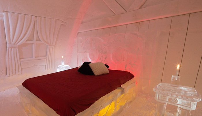 Hotel De Glace снабжен всеми удобствами: помимо шикарных апартаментов, украшенных звериными шкурами и скульптурами изо льда, в отеле работает бар, и есть множество развлечений для семейного отдыха. Кстати, очень часто сюда приезжают не только семьи с детьми, но и молодожены. Церемонию росписи можно провести в изумительной ледовой часовне, а о том, что первая брачная ночь в таком отеле окажется незабываемой, и говорить не приходится.