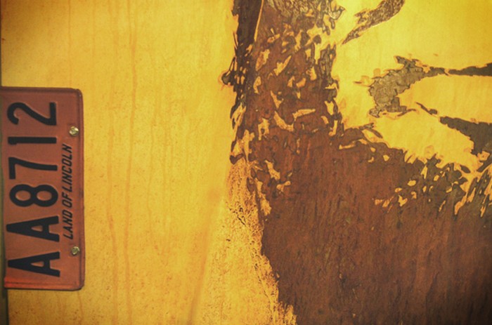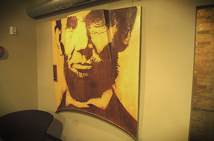 А американская компания Milwaukee Modern создала серию изображений Авраама Линкольна из ржавчины. Но не просто ржавчины, а той, которая обнаружилась под слоем облупившейся краски на капотах старых автомобилей Lincoln Continental.