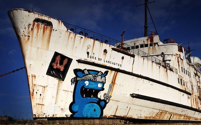 Стараниями стрит-арт-команды DuDug заброшенный корабль, одиноко ржавеющий в одном из портов Северного Уэльса, превратился в грандиозный арт-объект. Молодые граффитчики со всего мира покрыли корабль "Герцог Ланкашира" (Duke of Lancaster) росписью, превратив его в "The Black Duke" - "Черного Герцога".