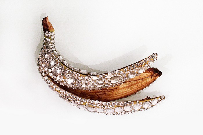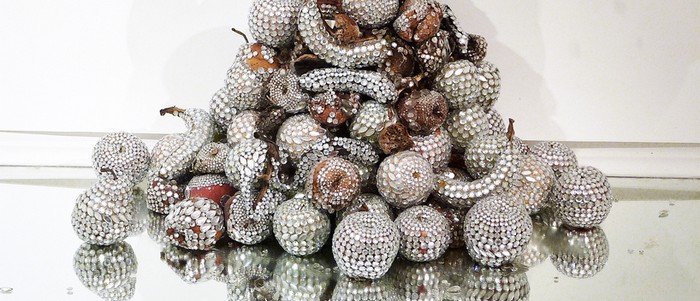 Эти работы представляют собой разнообразные овощи и фрукты, высохшие, гнилые, явно не первой свежести. Но испортившиеся они лишь внутри, снаружи же эти продукты покрыты драгоценными камнями от Tiffany, тем самым представляя собой весьма неординарный симбиоз прекрасного и ужасного.