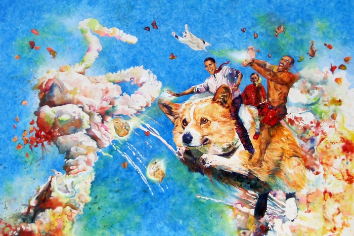 Молодой художник из Лос-Анджелеса Конрад Руис (Conrad Ruiz) рисует почти исключительно акварелью на бумаге, но его ослепительные работы запросто можно принять за полноценные картины маслом. Руис сочетает художественный вкус с искренним интересом к поп-культуре и рисует не только сложные абстракции, но и сценки из жизни Халка Хогана и Барака Обамы.