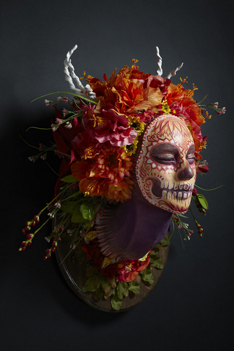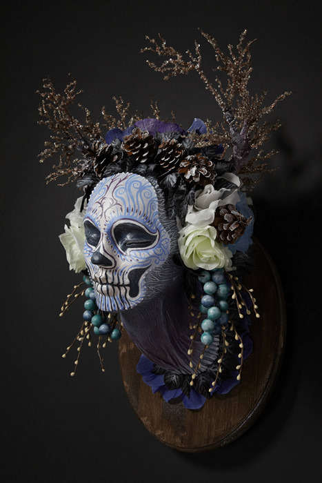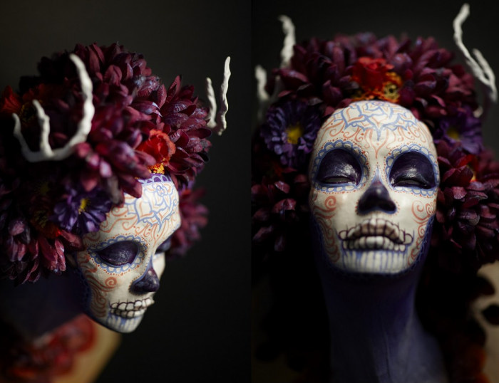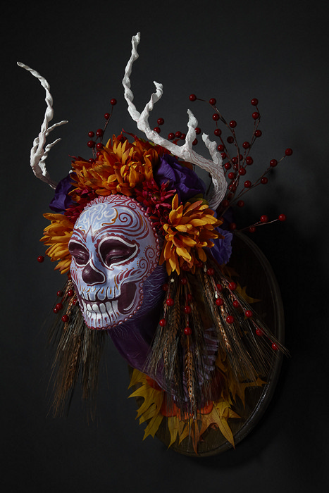 Одним из самых веселых и самых торжественных праздников в Латинской Америке, несмотня на свое название, считается "День Мертвых", или Day of the Dead. Естественно, общим символом праздника является череп, в почете - сладости в виде мертвых голов, скелетов, зомби и частей тела. Именно к этому празднику художница, известная как Krisztianna, приурочила презентацию своего арт-проекта Four Seasons Muertitas, серию жутковатых масок-скульптур, изображающих времена года.