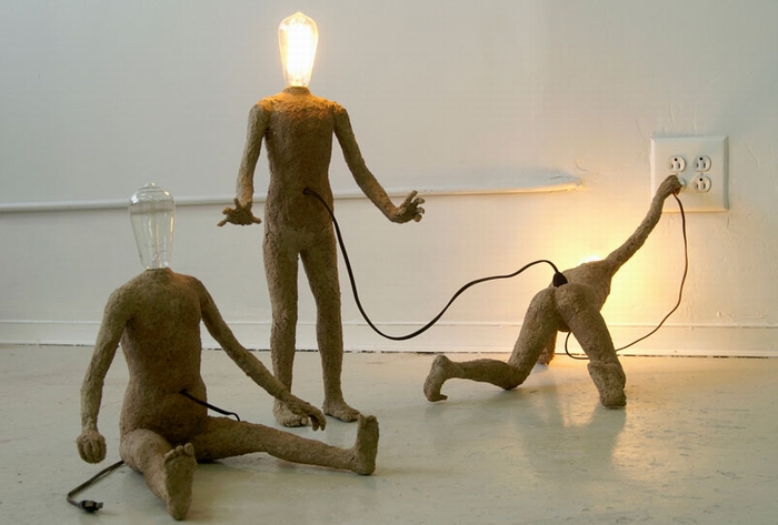Одна из самых успешных инсталляций Шахина носит двусмысленное название Headlights. Это игра слов: слово, означающее попросту "лампочка", здесь трактуется буквально - "огни в голове". В итоге перед глазами зрителей оживают пугающие люди-лампы, которые тянутся к розетке, как наркоман к шприцу.