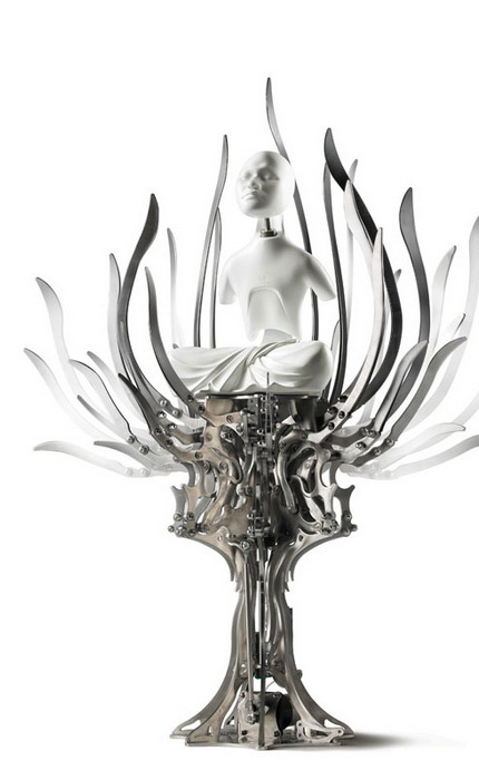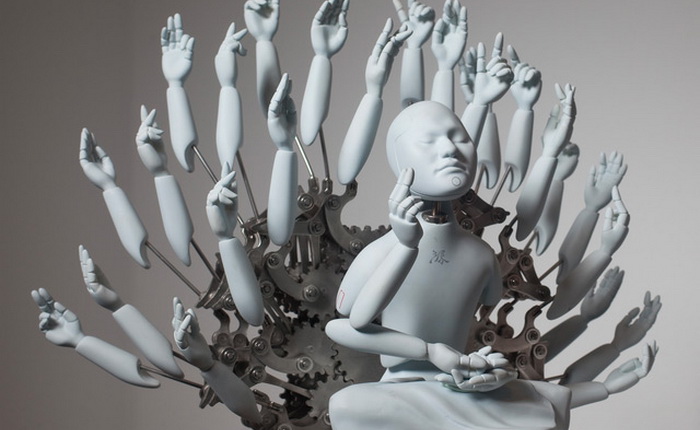 Ванг Зи Вон (Wang Zi Won) создаёт замысловатые механические скульптуры бодхисатв, то есть «просветлённых» в буддистской традиции. В его работах электрифицированные фигуры мерно покачиваются в едином ритме с многочисленными мелкими деталями, напоминающими то лепестки лотуса, то нимбы. Таким образом художник помогает нам заглянуть в будущее, когда, по его мнению, человечество и технология гармонично сольются воедино.