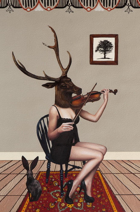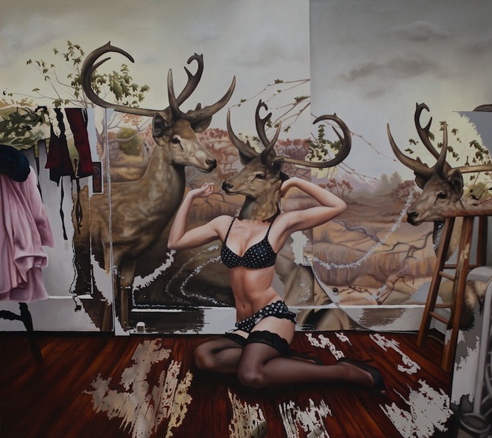 Споры о том, какая часть женского тела наиболее привлекательна, продолжаются уже давно. Конечно же, первое, на что мы обращаем внимание, – это миловидное личико. Не зря макияжу, прически и премудростям томного взгляда настоящие красотки учатся годами. А что было бы, если бы женского лица вдруг не стало, точнее, его заменила бы голова оленя? Абсурдная мысль, не правда ли? Но именно она вдохновила нью-йоркскую художницу Эмили Бернс (Emily Burns) на создание серии пин-ап картин, на которых девушки выглядят очень необычно.