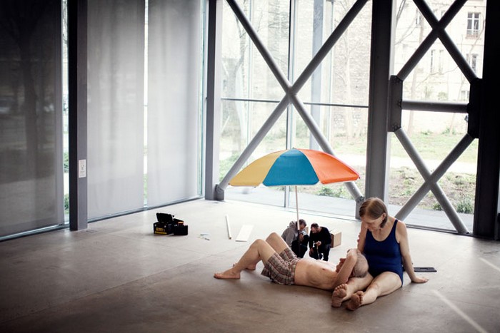Скульптура Couple Under An Umbrella от Рона Маека представлена сейчас в выставочном зале организации Fondation Cartier в Париже. Там она пробудет до сентября 2013 года.