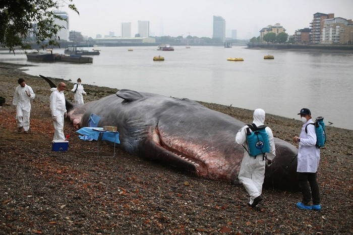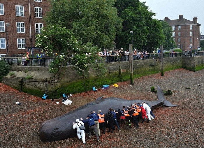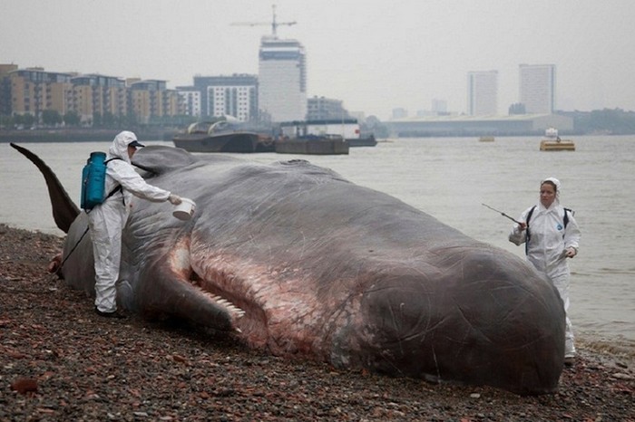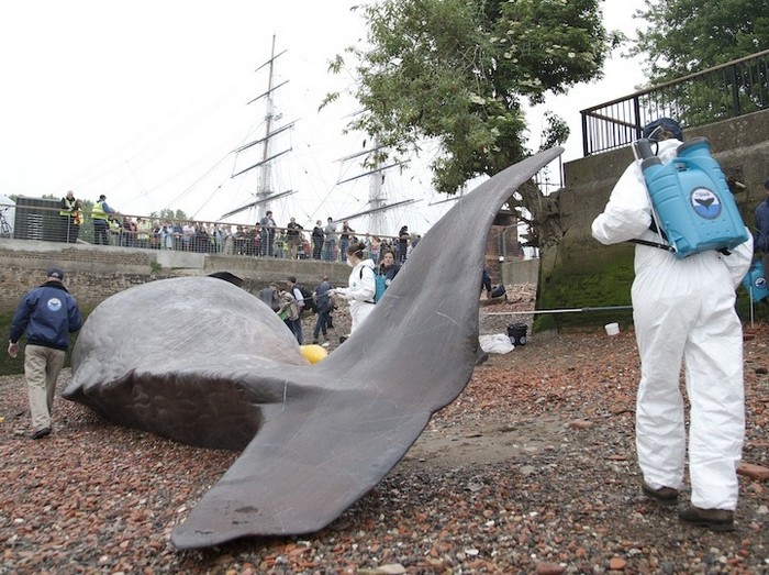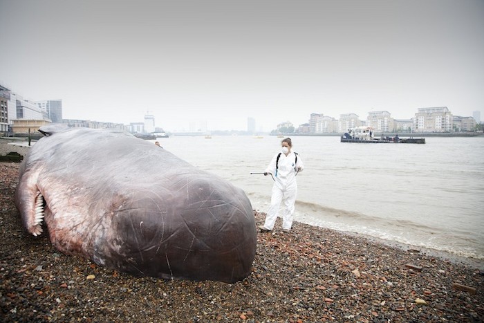 Художник Рон Маек (Ron Mueck) известен благодаря своим поражающим воображение гиперреалистичным скульптурам, с помощью которых он обращает внимание общественности на казавшиеся до этого незаметными детали. По его стопам идет и бельгийское объединение художников Captain Boomer. В рамках художественно-музыкального фестиваля Greenwich and Docklands International Festival, проходившего в конце июня в Лондоне, эти авторы «заставили» огромного кита выброситься на берег Темзы.