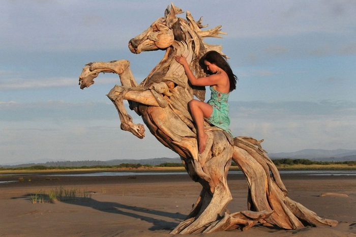 Деревянные скульптуры Jeffro Uitto – это настоящие произведения искусства. Мастер из Вашингтона влюблен в природу родного края: все его работы выполнены из коряг, найденных им на побережье. Причудливые формы вдохновляют его на создание удивительной красоты скульптур. Чаще всего – это животные и птицы, реже – предметы мебели.