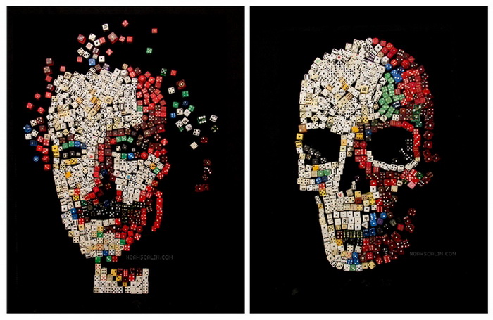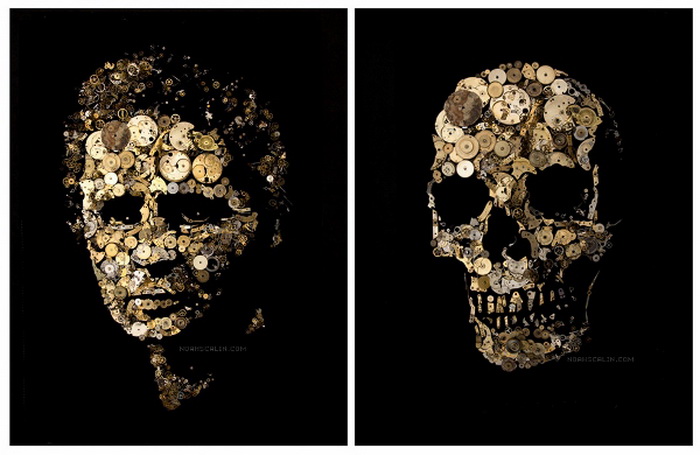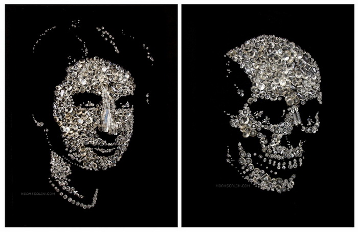 Кстати, это далеко не единственная коллекция Noah Scalin, посвященная созданию черепов. Один из наших прошлых обзоров рассказывал об эксперименте, который провел художник в интернете. Он пообещал пользователям Фейсбука ежедневно в течение года создавать черепа из различных подручных средств: чипсов, риса, сигарет, овощей и мармелада. Проект имел такой оглушительный успех в сети, что Noah Scalin решил не останавливаться на достигнутом. Только на этот раз моделями для художника стали известные люди.