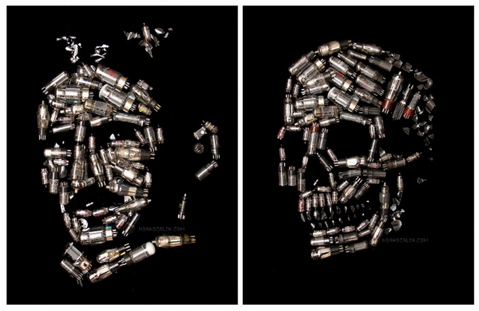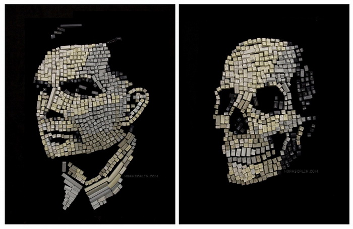 Далеко не все люди могут сделать что-то интересное из отходов. Вот наоборот – это запросто. Один из немногих научных умов, который способен превратить ненужный лом в произведения искусства - Noah Scalin. Его изделия довольно специфичные и даже пугающие. А все потому, что художник выкладывает из отходов не только портреты знаменитых людей, но и их черепа.
