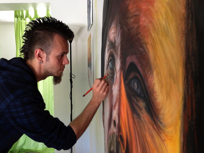 По профессии Дино Томик – тату-мастер, однако, в свободное от работы время он не прочь поэкспериментировать с масштабными изображениями. На создание галереи портретов он потратил довольно много времени. Например, для полотна, на котором изображен любимый дедушка, понадобилось около 70 часов работы.