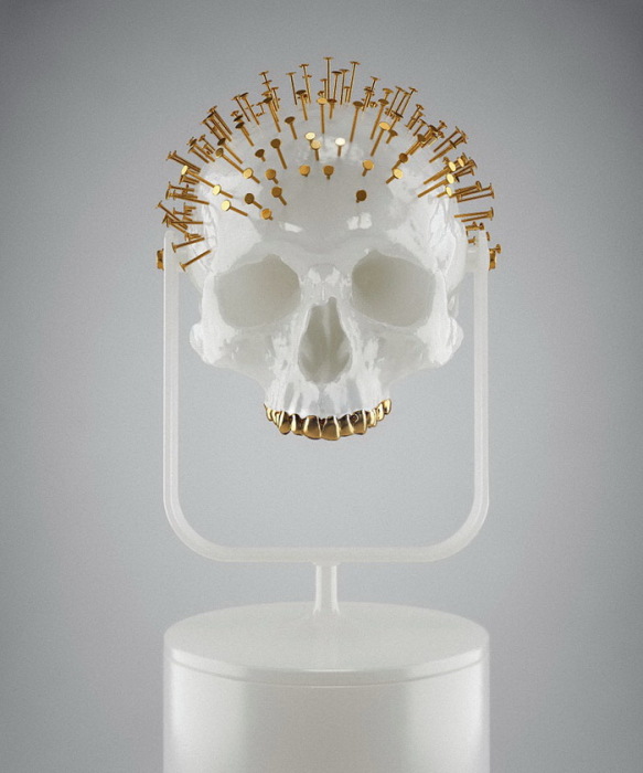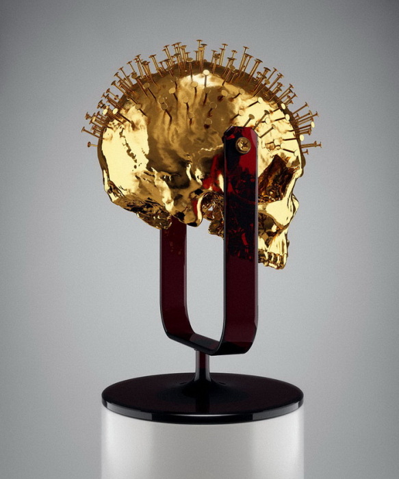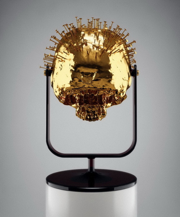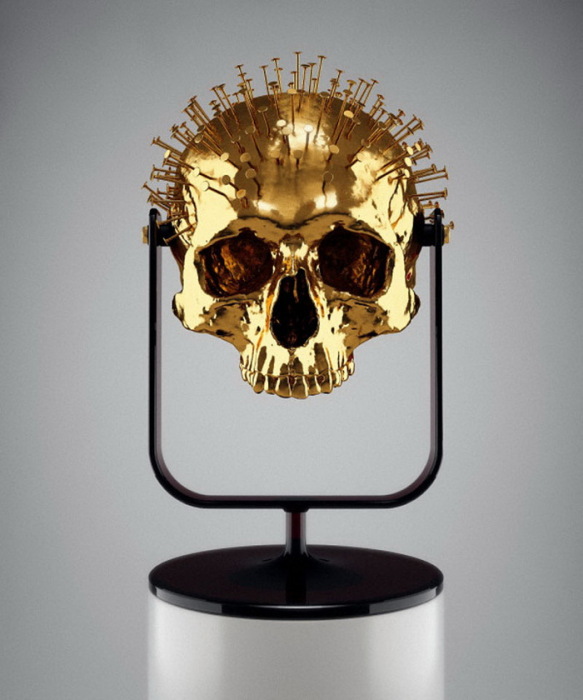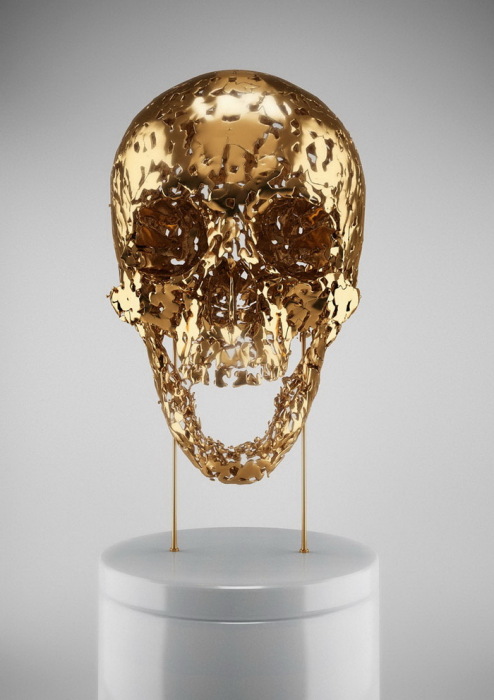 золотой череп из коллекции «Skull-ptures» от скульптора Hedi Xandt