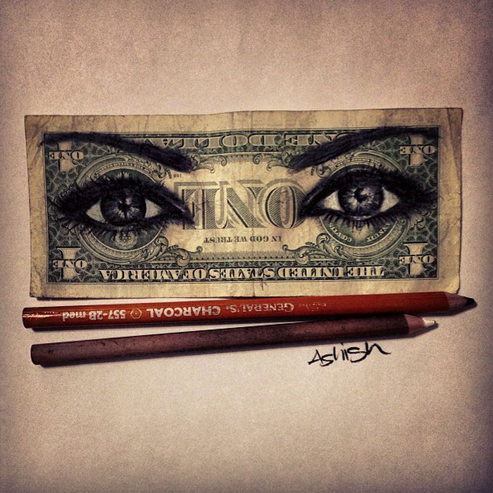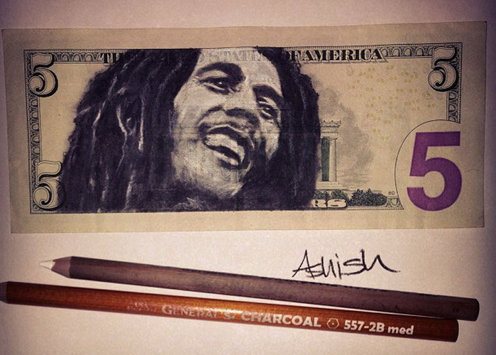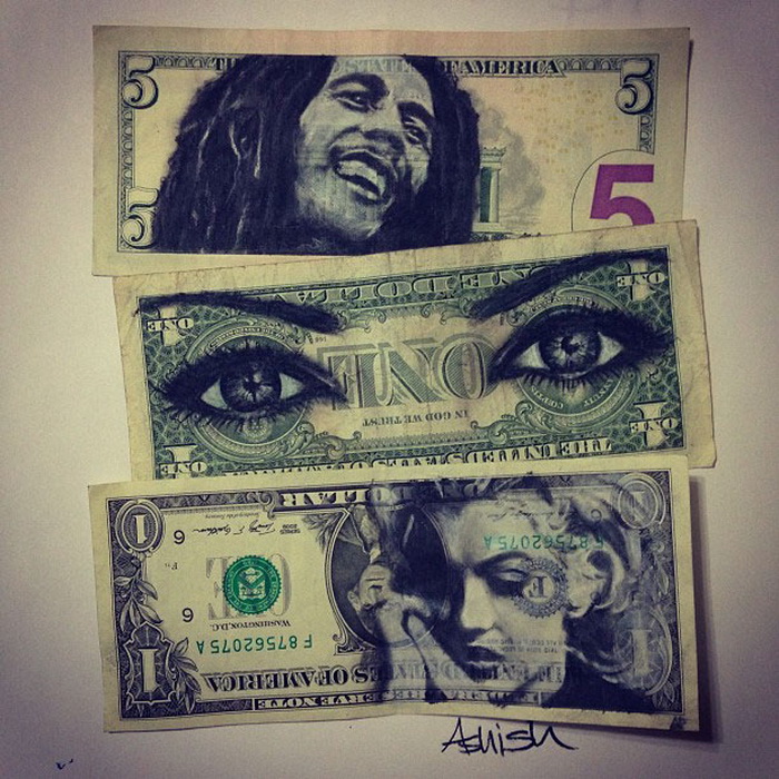 Самой большой популярностью в соцсетях пользуется серия, где Ashish Patel разрисовал 1 и 5 долларовые купюры. Причем художник решил не изменять своему жанру и нарисовать на деньгах портреты тех или иных знаменитостей графитом и карандашом белого цвета. Стоит ли говорить, что после эксперимента номинальная стоимость купюр резко возросла? Хотя доллары изначально не предназначались для продажи, а исключительно для творчества.