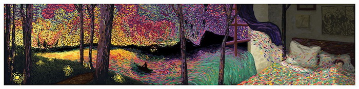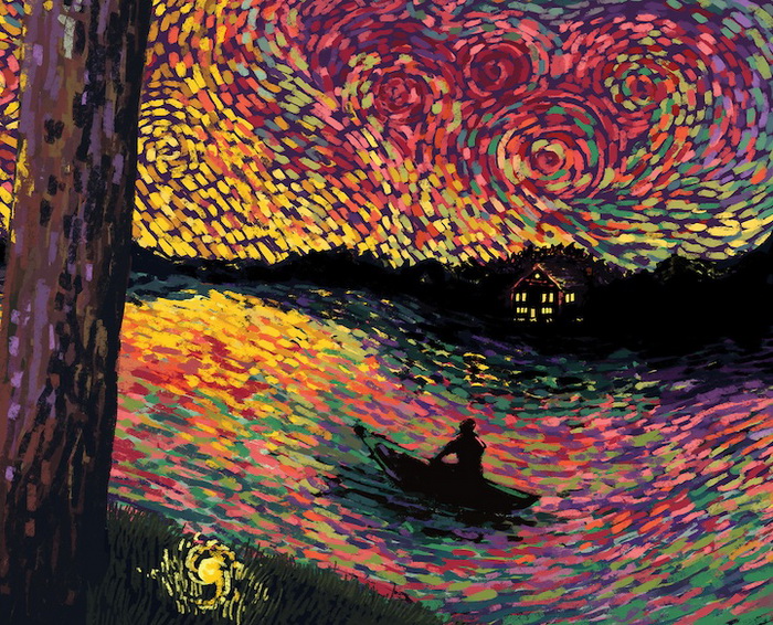 Еще одно путешествие – на картине «Фантастическое путешествие к свету» («Trip the Light Fantastic»). Это светлая мечта о том, чтобы однажды летней ночью, когда всюду будет темно, вдруг оказаться в оазисе тепла и света, где можно танцевать, не думая ни о чем. Желание художника – остановить время, чтобы утро не наступало, и последние часы, проведенные вместе с любимой, длились вечно.