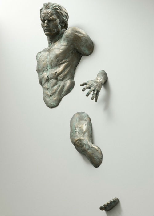 Бронзовые скульптуры Маттео Пульезе, талантливого итальянского скульптора, будто бы вросли в стены. Остается только догадываться, что именно повлияло на столь оригинальное художественное решение. Вышло, однако, образно и необычно.