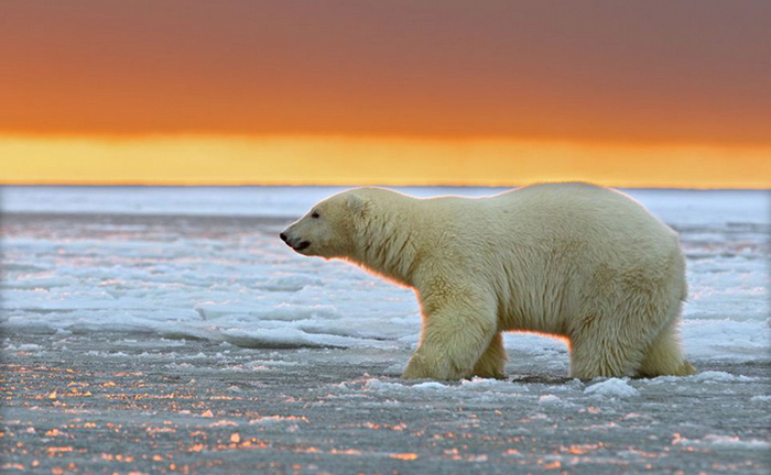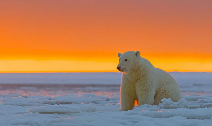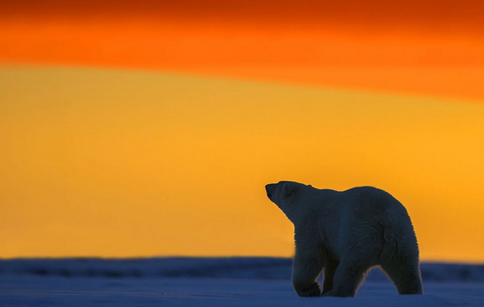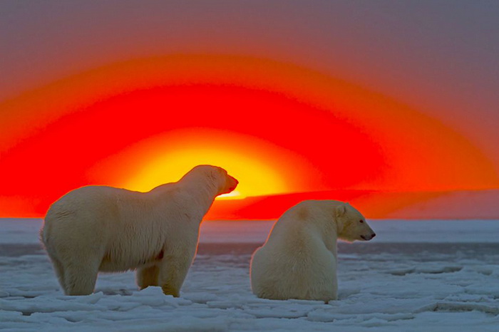 Снимков белых полярных медведей немало в Интернете: чаще всего фотографы снимают их во время купания на фоне бескрайней снежной пустыни. А вот французский фотограф Сильвен Кордье (Sylvain Cordier) – автор впечатляющего цикла работ, в рамках которого семейство медведей запечатлено на фоне потрясающего заката.