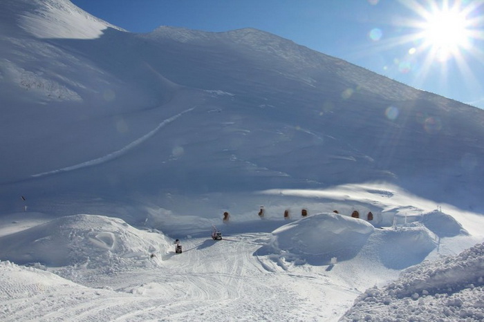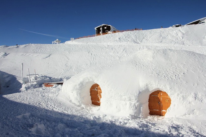 Отель построен в форме традиционного жилища эскимосов – иглу. Посетители уверяют, что внутри не так холодно, как может показаться на первый взгляд. Администраторы IgluLodge объясняют, что позаботились о комфорте гостей: снежные кровати покрыты слоем теплоизоляции, застланы покрывалами из натуральной оленьей кожи, кроме того, туристам выдают спальные мешки подобные тем, что используются во время экспедиций в Гималаях.