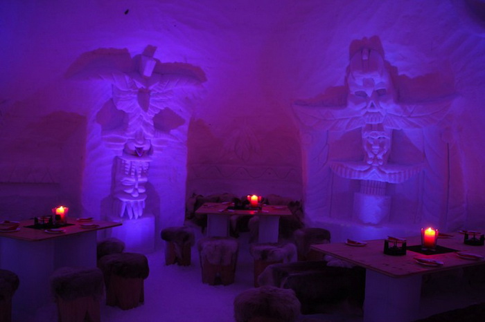Владелед отеля Матиас Ленц рассказывает, что оригинальный интерьер привлекает туристов, которые буквально теряет дар речи, попав в эту снежную сказку. Команда местных художников, скульпторов и архитекторов украсила стены ледяного жилища разнообразными скульптурами, так что изумленные посетители могут долго исследовать комнаты. Помимо номеров, в отеле есть ресторан и кафе-бар, где можно хорошо провести время и вкусно поесть. Гости также могут посетить сеанс расслабляющего гидромассажа, горячие ванны находятся на улице.