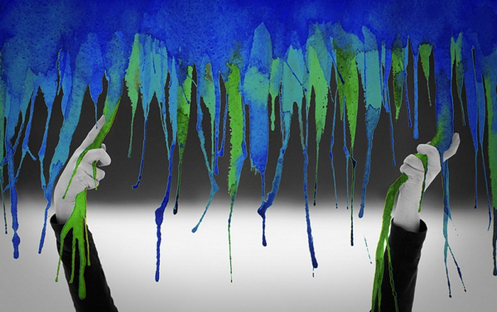 Чего только не встретишь в работах Aliza Razell! И взлетающую на оранжевых крыльях златовласую красавицу; и золотой дождь, стекающий между пальцев; и второе «я» человека, отраженное акварельным силуэтом, взявшим героя за руку. Каждое произведение из коллекции Aliza Razell наполнено глубоким смыслом, каждый мазок продуман, а цветовая палитра настолько насыщенна, что на фотографиях не встретить однозначного цвета или оттенка. Каждый персонаж прорисован несколькими мазками, где один цвет плавно перетекает в другой, а подтеки тщательно спланированы.