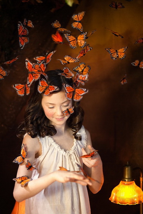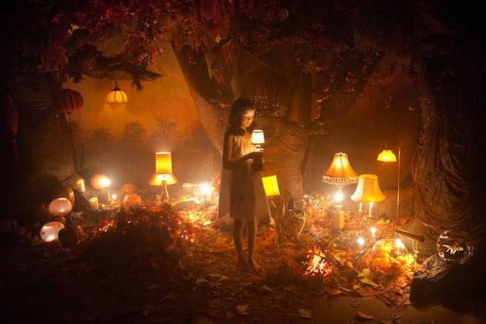 Наши постоянные читатели наверняка помнят начало этого удивительного цикла фотографий. Ранее во время волшебного путешествия маленькая девочка побывала в белой, красной, желтой и синей комнатах, теперь же она очутилась в оранжевой. На этот раз девочка попадает в сказочный лес, который она исследует шаг за шагом. Под ногами мягко стелется пожелтевшая листва, вокруг ребенка летают бабочки с оранжевыми крылышками, а теплый свет ламп с уютными торшерами освещает ей путь. Точкой перехода в следующую цветную реальность в этом фотоцикле выступает дупло огромного дерева. Девочке удается его найти, так что, можем надеяться, Эндриен Брум будет и в дальнейшем радовать нас новыми снимками.