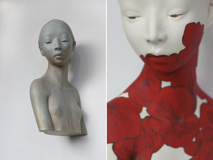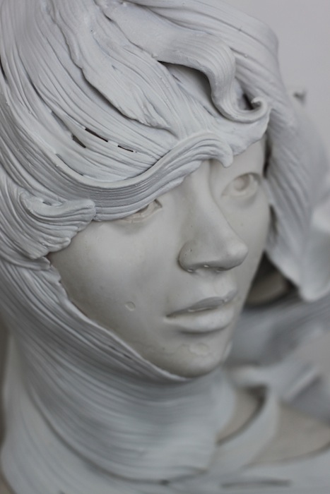 Интересная особенность её рабочего процесса заключается в том, что каждый новый бюст она делает на основе готовой формы, которую художница может окрашивать, текстурировать, добавлять различные детали, в общем, видоизменять по своему усмотрению.