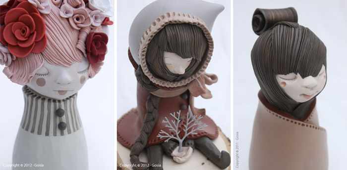 Гося (Gosia), талантливая художница из Торонто, выпустилась из колледжа искусств иллюстратором и добилась определенного успеха в этой области. Её работы заняли первые места на нескольких конкурсах и неоднократно освещались в профильных изданиях. Тем не менее художница продолжила осваивать новые приемы и материалы, а в последнее время и вовсе отказалась от иллюстрации и маленьких статуэток в пользу более масштабных скульптурных работ.