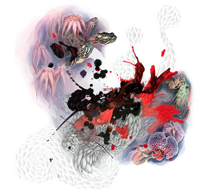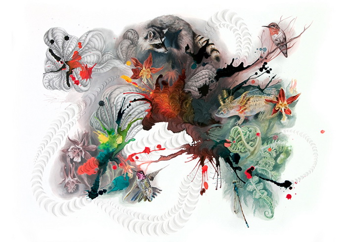 J. S. Weis – талантливый художник из Окленда, презентовавший серию оригинальных арт-объектов под названием «Liquid Hymn». В арсенале мастера – чернила, карандаши и бумага. Из них он создает «многослойные» объемные картины, на которых переплетаются абстрактные изображения животных и растений.