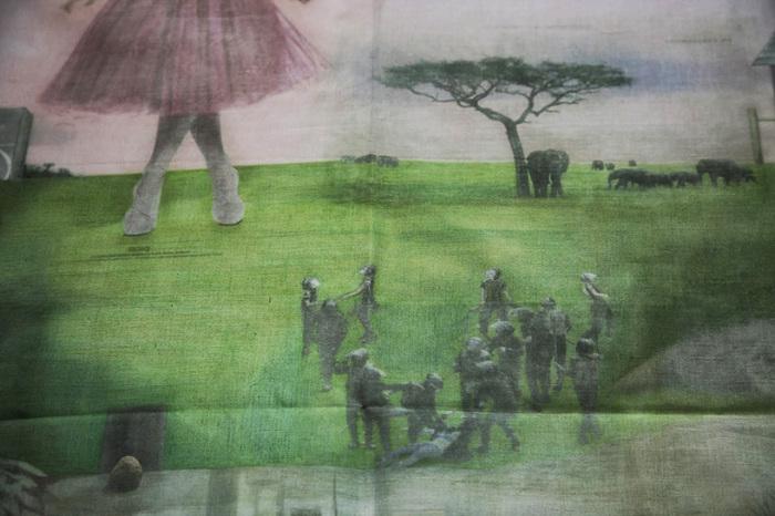 Переведённые фотографии из «Нью-Йорк Таймс» художник дополнил ручной графикой