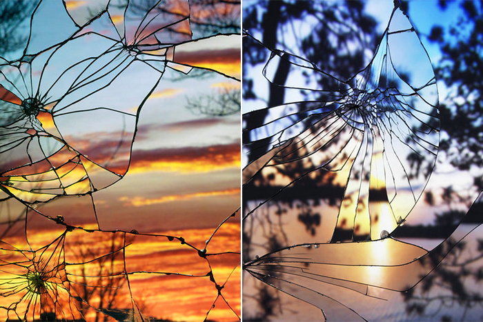 Если верить приметам, зеркало бьется к несчастью. Если верить Bing Wright, то к новым произведениям искусства. Свою теорию художник регулярно доказывает очередными творениями, в которых выгодно сочетаются закат и разбитое зеркало. Что из этого выходит у американца можно посмотреть в нашем обзоре.