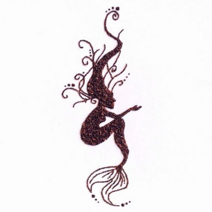 Среди мастеров «кофейного» искусства следует назвать имена малайской художницы Hong Yi, которая рисует следами от чашек с кофе, и албанского маэстро Самира Страти, умудряющегося выкладывать умопомрачительные мозаики из миллиона кофейных зерен. Работы филиппинской мастерицы Лив Барандэй не настолько масштабные, но по-своему впечатляющие.