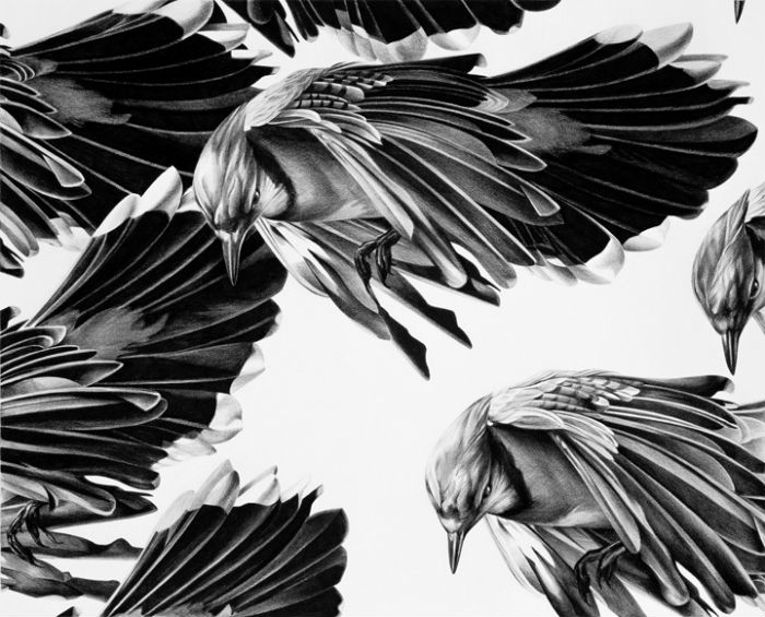 Калифорнийская художница Кристина Эмпедокл (Christina Empedocles) создаёт прекрасные фотореалистичные иллюстрации при помощи восковых карандашей. Принцип её работы – наблюдение за птицами и последующее воссоздание результатов этих наблюдений на бумаге в мельчайших деталях.