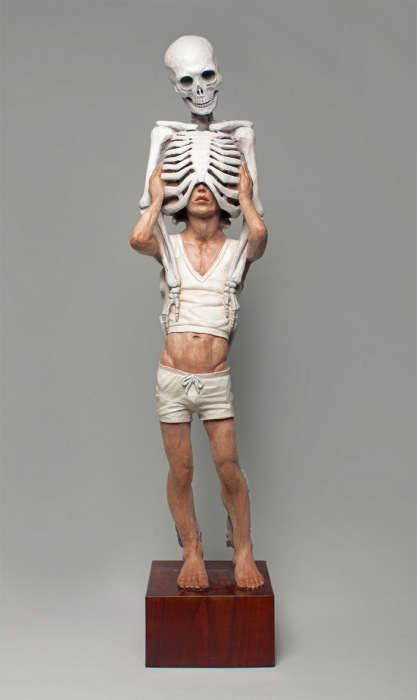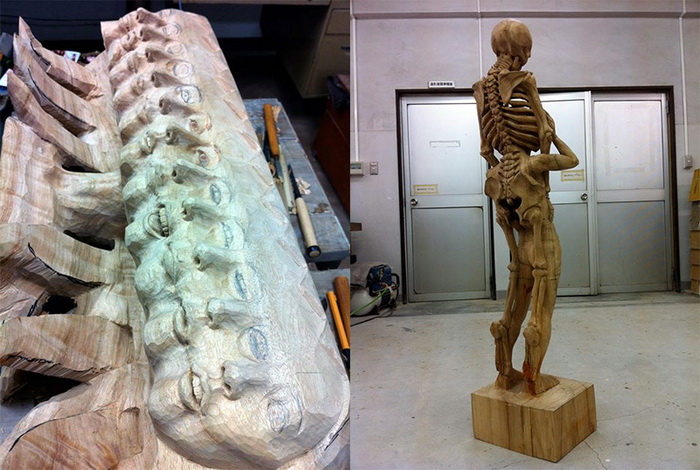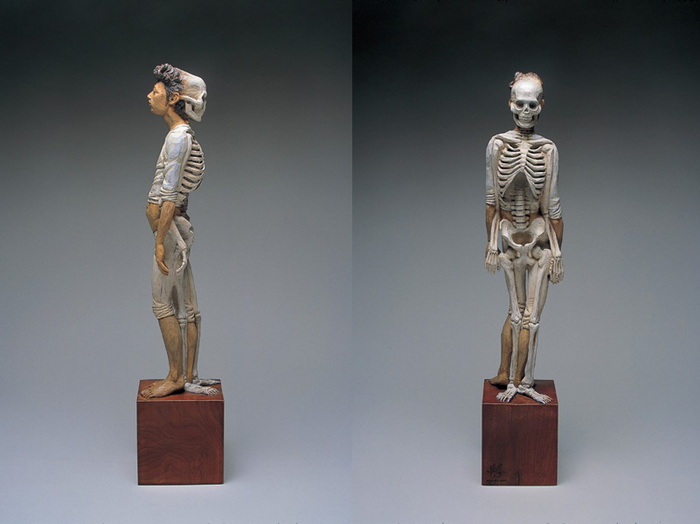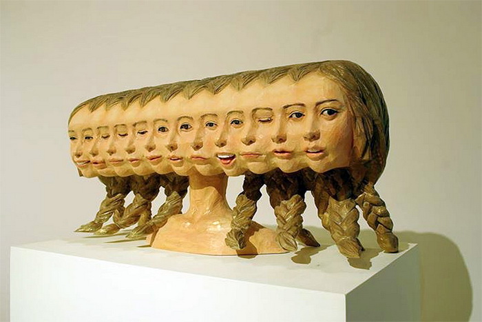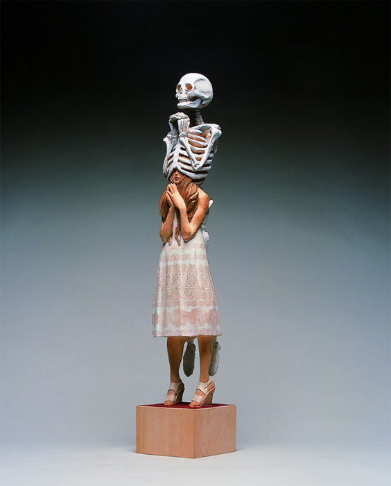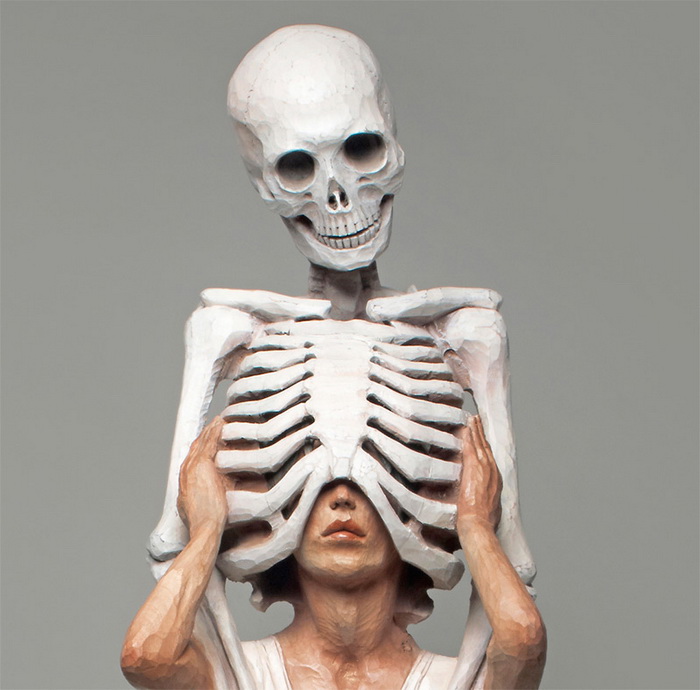 Деревянные скульптуры, изображающие людей, не редкость. Даже скелетами из дерева уже никого не удивишь. Но Yoshitoshi Kanemaki все-таки удалось создать серию оригинальных скульптур. Часть из них изображает фигуры людей, украшенных деталями скелета; часть представляет собой вереницу женских голов, плотно прижатых друг к другу; оставшиеся фигуры тоже выглядят фантастично, благодаря неиссякаемой фантазии скульптора.