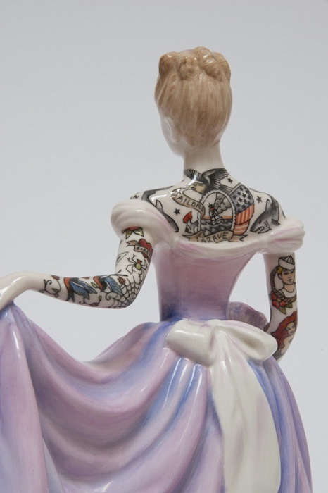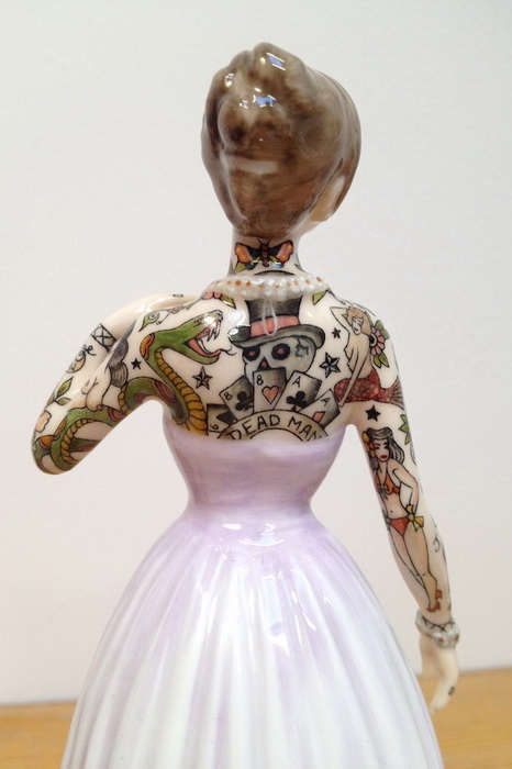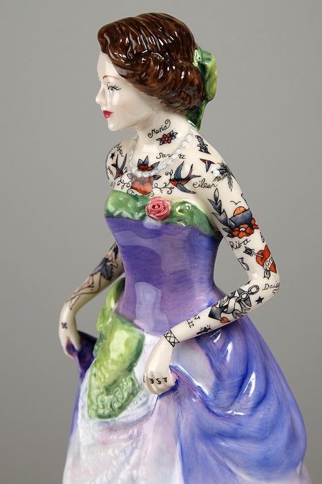 Делать татуировки в последние годы стало весьма популярно. Рисунками на теле сегодня мало кого удивишь, но шотландской художнице Джессике Харрисон (Jessica Harrison) это удалось. Она создала новую серию утонченных фарфоровых статуэток в викторианском стиле, «осовременив» женские образы смелыми тату.