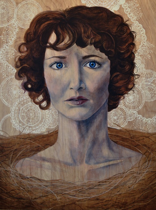 Портреты выполнены акриловыми красками и графитом по берёзовым доскам