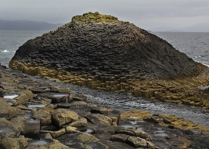 Кельтская легенда гласит, что когда-то пещера была частью огромного моста через море, построенного великанами, чтобы бороться друг с другом (другой конец моста — Дорога гигантов в Северной Ирландии, знаменитая похожим «блочным» ландшафтом). Наука утверждает, что она была сформирована из лавы, которая, медленно остывая, раскалывалась на длинные гексагональные столбы, как грязь, которая трескается, высыхая на солнце.