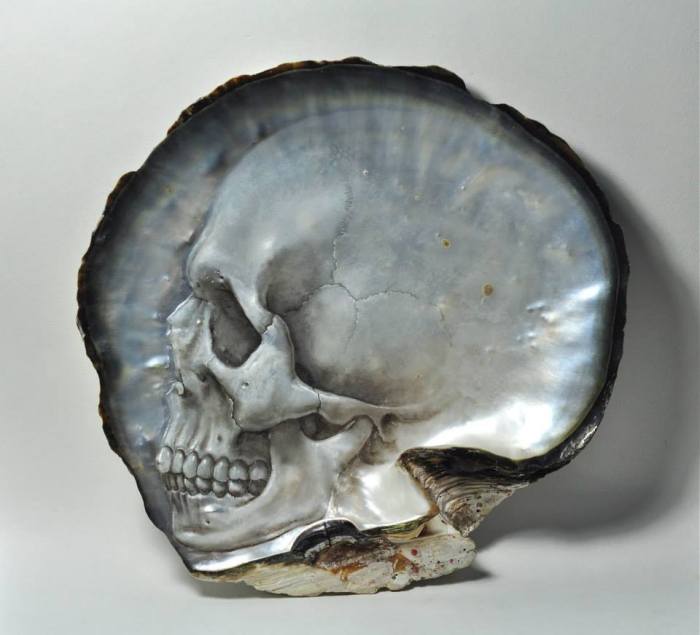 Современные художники все чаще демонстрируют зрителю необычные интерпретации слияний различных научных областей с искусством. Чудесные перламутровые ракушки с изображениями черепов – прекрасный результат удивительной гармонии природы и человеческих форм.