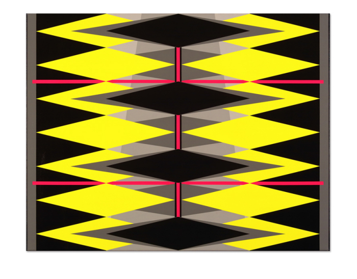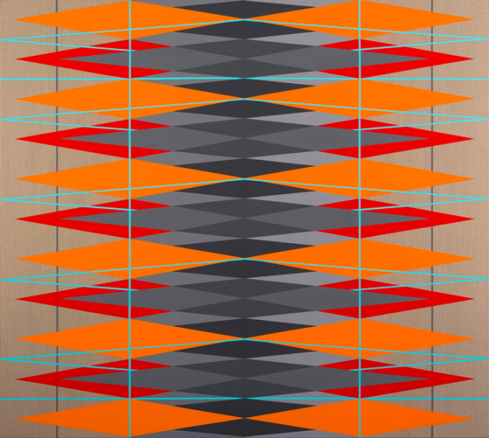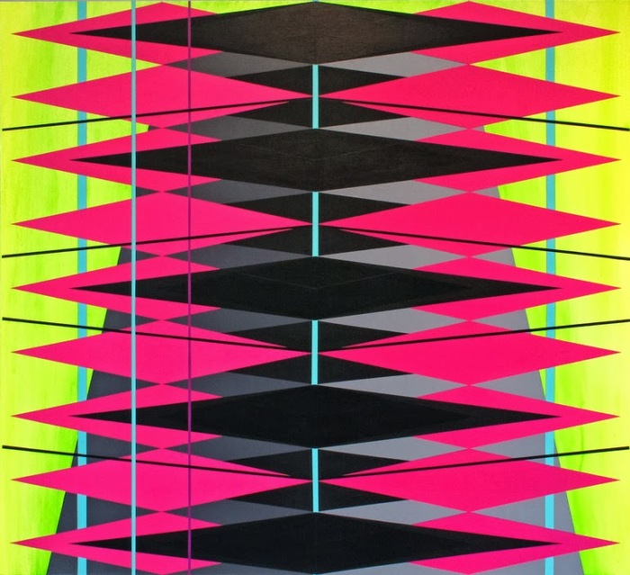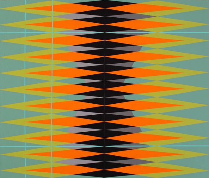 Яркие абстрактные картины словно гипнотизируют зрителя. Сочетание контрастных цветов и строгих геометрических узоров с обилием острых углов в совокупности создают на первый взгляд простую, но очень интересную композицию, на которую нельзя не обратить внимание.