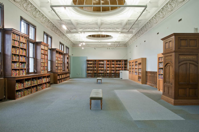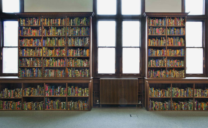 На корешке каждой книги, представленной в библиотеке, значится имя одного из виднейших деятелей культуры Британии