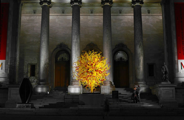 19 июня текущего года в дублинской галерее Solomon Fine Art открылась выставка известнейшего мастера-стекловара Дейла Пэтрика Чихули(Dale Patrick Chihuly). Американский художник, чьи работы не раз выставлялись в таких крупных арт-пространствах, как лондонский музей Виктории и Альберта (Victoria and Albert museum), Метрополитен-музей (Metropolitan Museum of Art) и парижский Лувр (Louvre), получил всемирное признание за непревзойдённое мастерство в работе со стеклом.