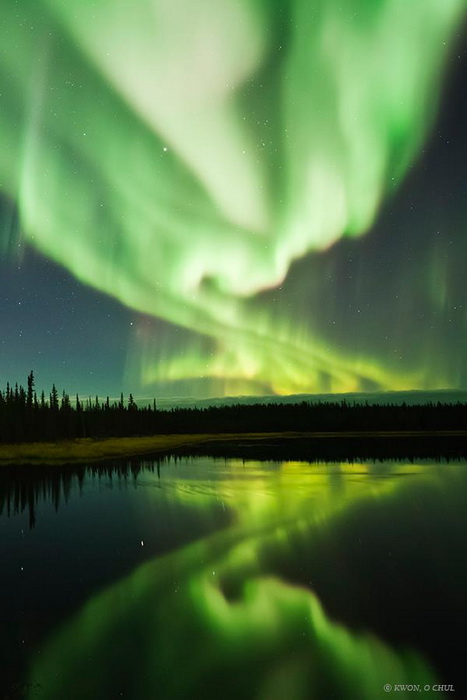Полярное сияние – одно из наиболее впечатляющих природных явлений. Сотни туристов ежегодно съезжаются в небольшой городок Йеллоунайф на севере Канады, чтобы своими глазами увидеть эту красоту. У нас есть уникальная возможность полюбоваться изумрудным свечением благодаря снимкам корейского астрофотографа Ван О Чул (Kwon O Chul).