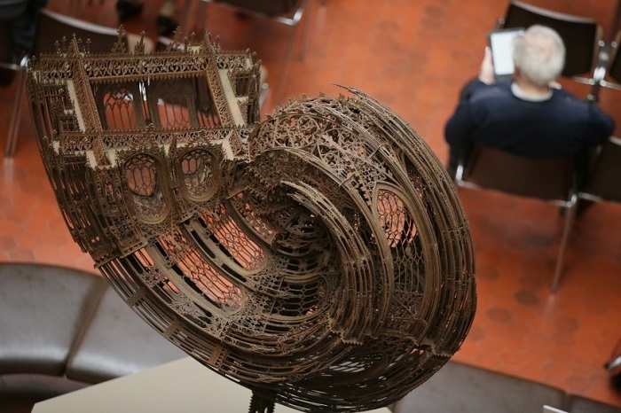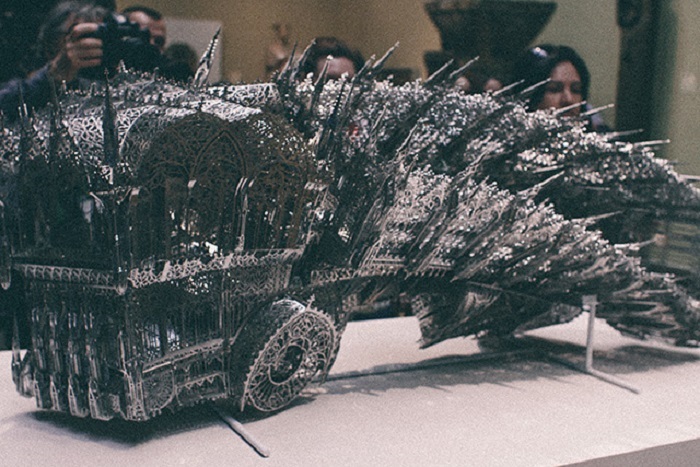 Цель выставки: показать взаимодействие классического и современного искусств. Гладильные доски превратились в средневековые гербовые стяги, а канистра для кулера стала фигурной вазой. В экспозиции представлены и более ранние его работы: металлические готические грузовики. Сам автор признается, чем обыденнее предмет, тем причудливее он будет смотреться в витиеватом ажурном исполнении.