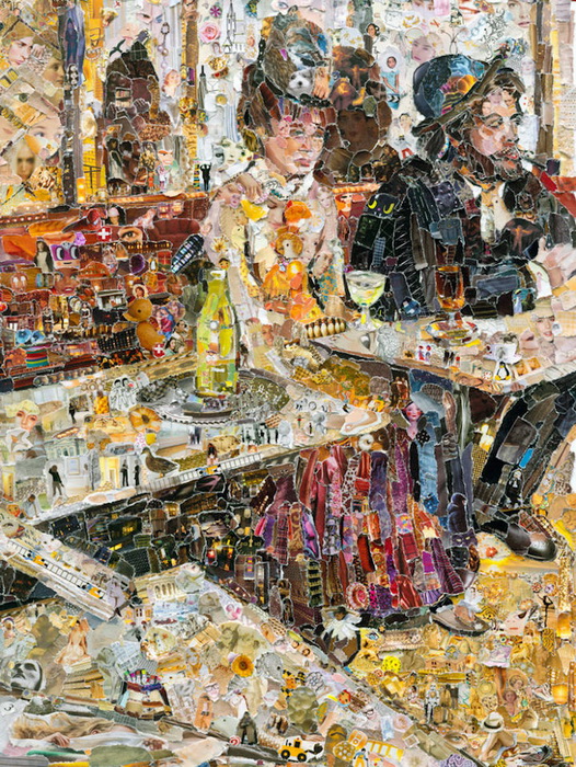 Создание коллажей – еще одно направление, в котором Вик Мунис достиг высоких результатов. Вначале он экспериментировал со старыми фотографиями, складывая (подобно паззлу) из их отдельных частей оригинальные картины. А недавно решил посягнуть на полотна импрессионистов: такие картины, как «Звездная ночь» Ван Гога, «Бар в Фоли-Бержер» Эдуарда Мане, «Абсент» Эдгара Дега и некоторые другие, он «собрал» из сотен (а возможно и тысяч) разнообразных элементов.