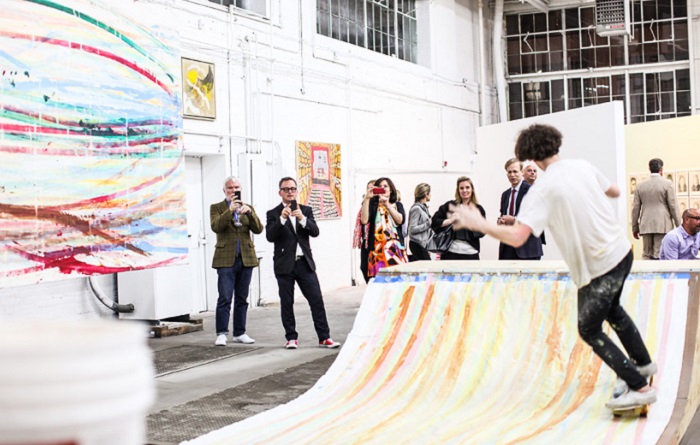 В культурном центре Mana Contemporary, находящимся в городе Jersey City (США), посреди выставочного зала поставлена спортивная вогнутая площадка хаф-пайп (half-pipe), на которой выполняет свои трюки на скейтборде художник Мэтт Рейли (Matt Reily). Кроме того, она еще является и своеобразным холстом для рисования.