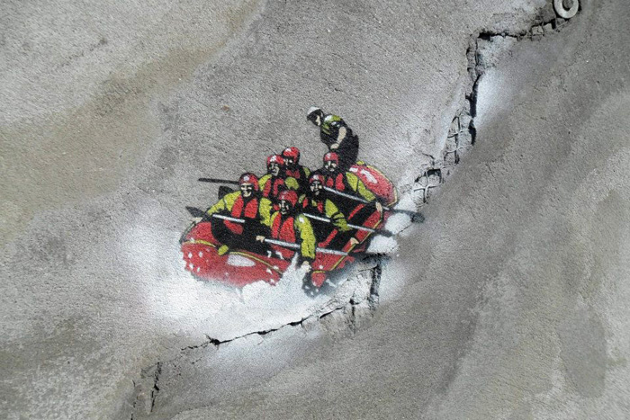 Ироничное граффити, идеально вписывающееся в городской пейзаж